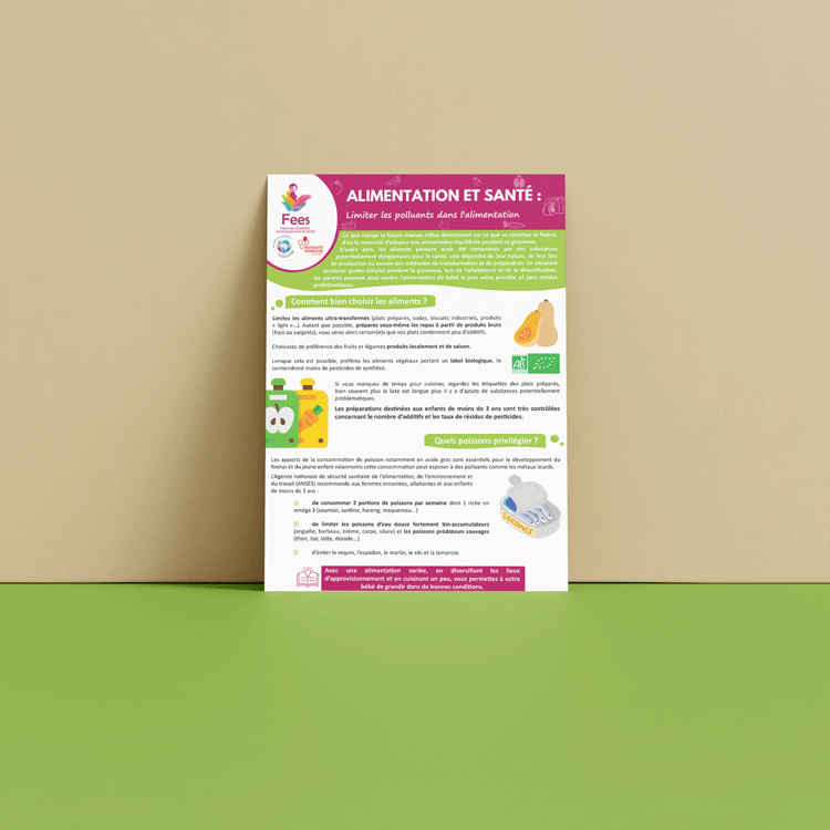 Pendant la grossesse, l’alimentation influence directement la santé du bébé. Certains aliments peuvent contenir des substances à risque selon leur origine ou préparation. Notre fiche Alimentation vous aide à faire les bons choix : poissons, eau, biberons, préparation des repas… Des conseils simples pour une alimentation saine pendant les 1000 premiers jours.