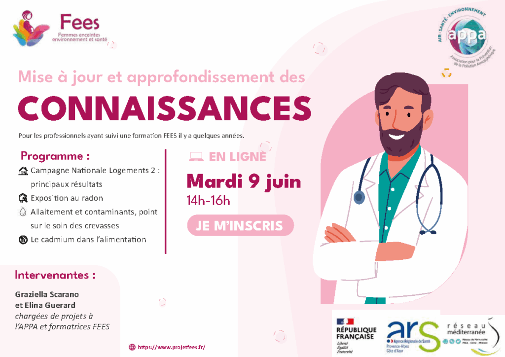 Pour les professionnels de la région PACA ayant déjà suivi la formation théorique il y a quelques années et qui souhaitent actualiser leurs notions en santé environnementale, le projet FEES propose une session de mise à jour des connaissances EN LIGNE.